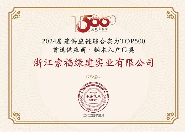 索福门业再获“2024房建供应链综合实力Top500”首选供应商五大榜单前5强!